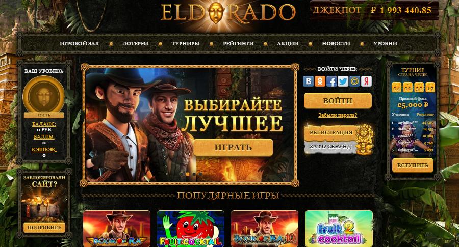 Казино Эльдорадо функционирует в течение длительного времени, и зарекомендовало себя надежным партнером пользователей, заходящих на портал для того, чтобы сразиться с игровыми автоматами и выиграть реальные деньги.