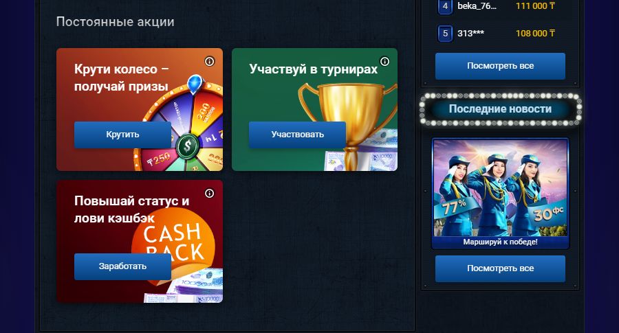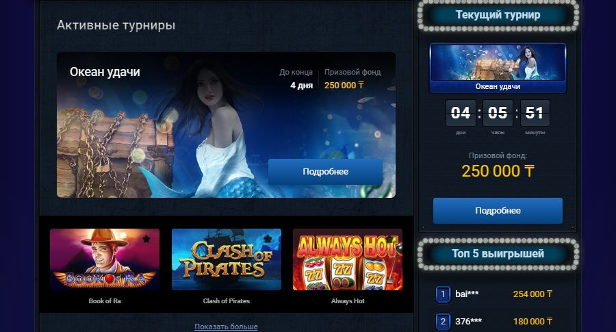 - Крупные призы за победу в турнирах и акциях