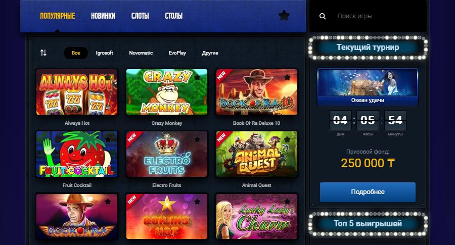 - Большой ассортимент игровых автоматов